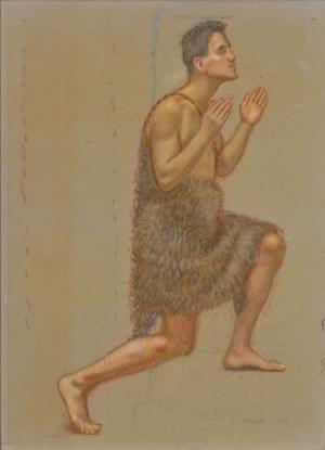 Etude de Saint Jean Baptiste, pastel sur papier signé et daté 19...
