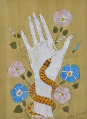 La main du péché, dessin à la plume, aquarelle et craie blanche,...