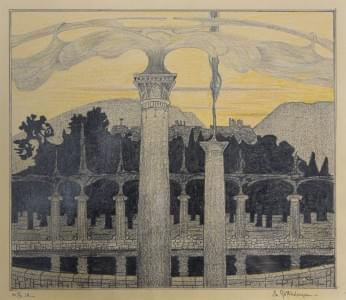 Bassin à colonnades, 1913 dessin au crayon sur papier, daté 10.3...
