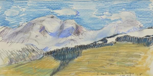Le Mont-Blanc vu de Combloux, crayon sur papier monogrammé et da...