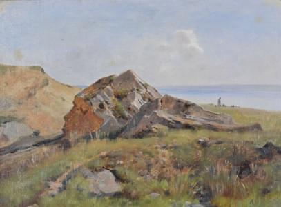 Colline de Montriond, Lausanne-Ouchy, huile sur panneau, tampon...