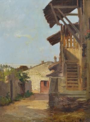 Chemin conduisant à la ferme de St Georges, huile sur carton sig...