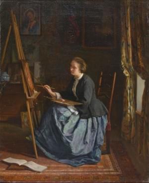 Portrait de Madame Armand Leleux au chevalet, huile sur toile, 5...