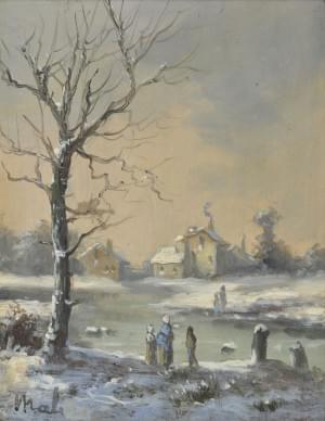Le hameau sous un ciel d'hiver, huile sur toile signée et datée...
