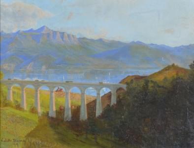 Le viaduc, huile sur panneau signée et datée 1909, 46 x 62 cm