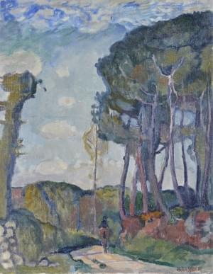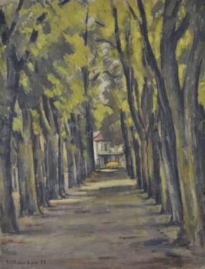 Allée ombragée, huile sur toile signée et datée 42, 65x50 cm