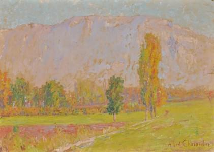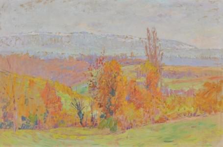 Le Salève à l'automne, huile sur carton signée, 48x66 cm