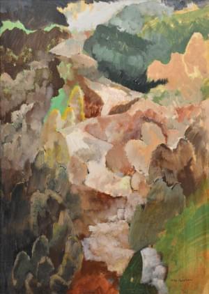 Paysage de montagne, aquarelle et gouache, signée, 24x19 cm