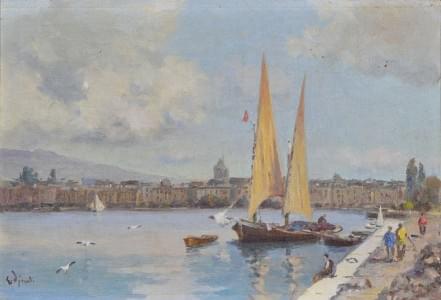 Huile sur toile, Rade de Genève, signée, 20x30 cm