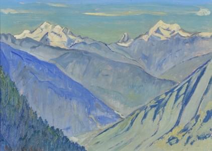Les Mishabel au-dessus de Saas Fee, Valais, huile sur toile, sig...