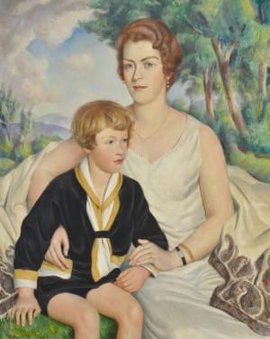 Théophile Robert (1879-1954) Femme élégante et son jeune enfant,...