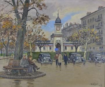 La station, huile sur toile signée et datée 45, 50 x 62 cm