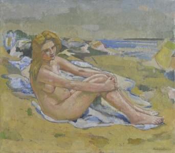 Nu féminin sur la plage, huile sur toile, 75x85 cm