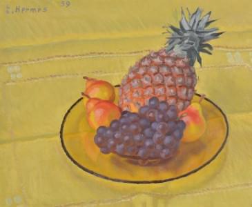 Coupe de fruits, huile sur toile signée et datée 39, 46 x 55 cm