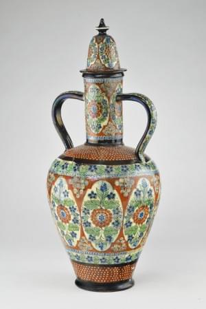 Terre vernissée à décor incisé de fleurs, Thoune XIXe s, H 65 cm
