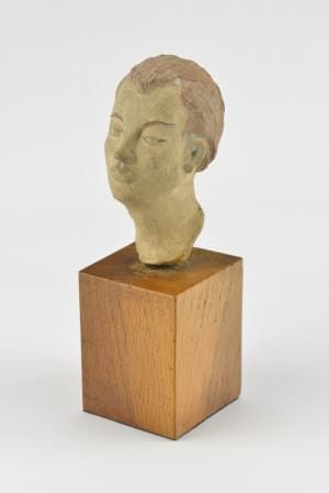 Buste d'adolescent, plâtre polychrome, H 13 cm