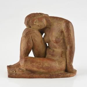 Nu assis, terre cuite ocre, signée et datée 48, 27x30 cm