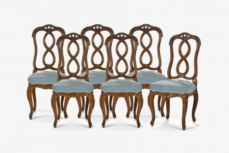 Noyer mouluré et sculpté de chutes de lauriers, garniture bleue