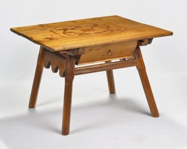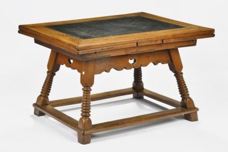 Plateau avec ardoise enchâssée de Glaris, pieds tournés à entret...