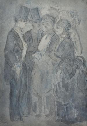 Rencontre à la promenade, crayon et lavis sur papier, non signé,...