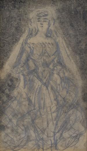 Femme au voile, crayon et lavis sur papier, non signé, 6x10cm