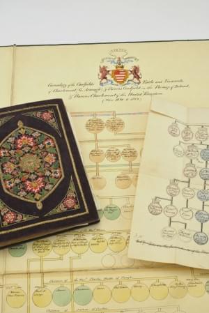 grand arbre généalogique, milieu XIXe s. On joint un album brodé...