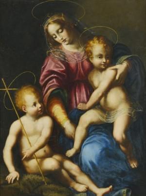 La Sainte Vierge, Le Christ et Saint Jean-Baptiste, huile sur to...
