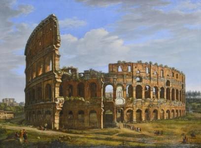 Paysage de ruines antiques, huile sur toile, 35 x 29 cm