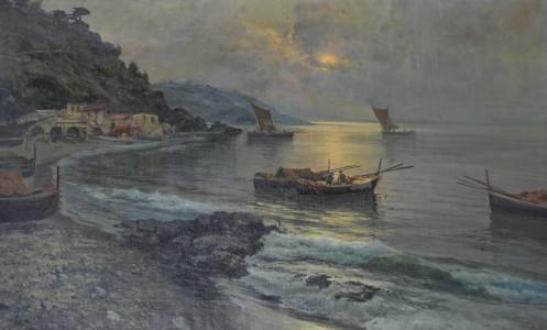 Effet de lune sur la mer, huile sur toile, signée, 83x137 cm