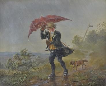 L'averse, huile sur toile, monogrammée et datée 1892, 19x23 cm
