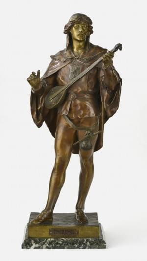 Le Troubadour, bronze sur socle marbre, signé, H 75 cm