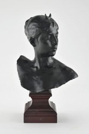 Buste de Diane, bronze à patine foncée, signé, piédouche en marb...
