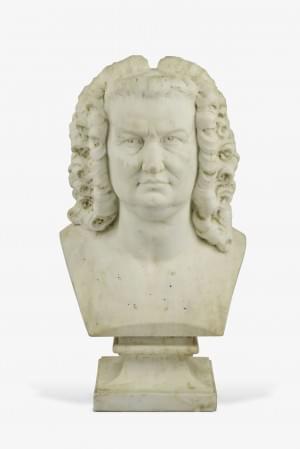 Portrait de Jean-Sebastien Bach, marbre blanc sculpté sur piédou...