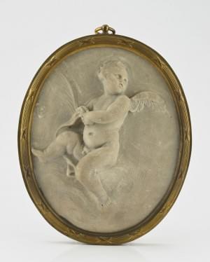 Putti, paire de médaillons ovales en haut relief, marbre, XVIIIe...