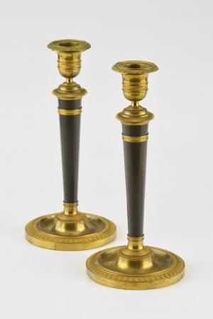 Les 2 bras de lumières soutenus par un putto, bronze doré et pat...