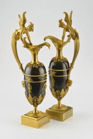 Les anses en forme de femmes ailées, bronze doré et patiné, H 59...