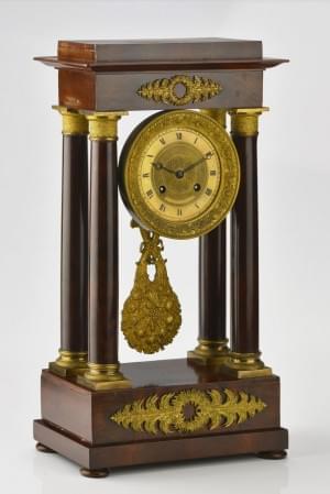 Acajou et bronze doré à décor de palmettes, cadran aux chiffres...