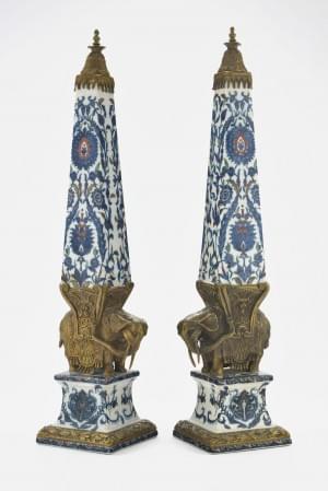 Faïence dans le style d'Iznik et bronze, datés 1895, H 65 cm