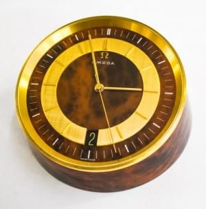 Cadran brun, index bâton doré, date à guichet à 6h, D 11 cm