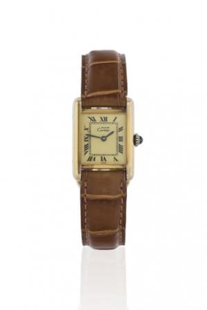 Cadran crème, chiffres romains et aiguilles noirs, vermeil, 20x1...