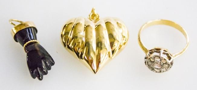 3039. Lot de 1 pendentif en forme de coeur et d'une bague sertie de di...