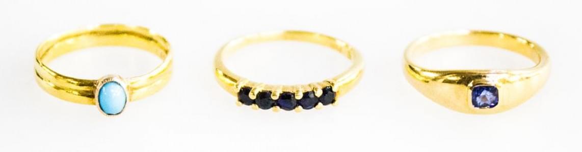 3054. Lot de 3 bagues, 2 serties de saphirs et la troisième d'une turq...