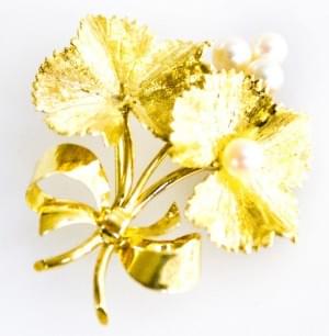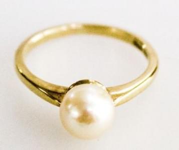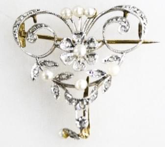 3068. Lot d'une broche et d'une bague serties de perles blanches