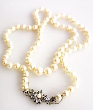 3058. Collier de perles, fermoir serti d'une perle et de saphirs