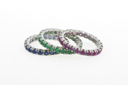 3064. Lot de 3 bagues serties de saphirs, émeraudes et rubis