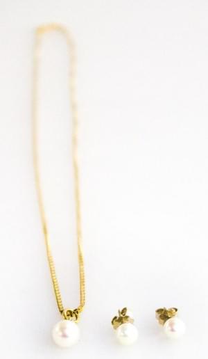 3069. Lot d'une chaine retenant une perle blanche sertie de diamants e...