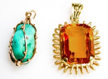 Or 750, 12 g. On joint un pendentif serti d'une turquoise entour...