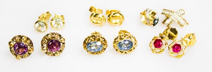 3087. Lot de 6 paires de clous d'oreilles sertis de diamants, d'améthy...