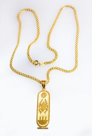 3092. Pendentif égyptien retenu par une chaîne à maille fantaisie