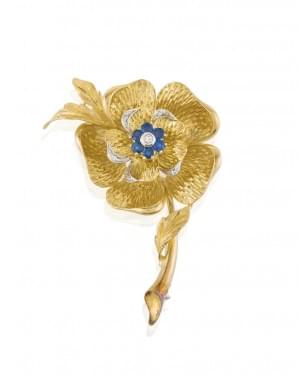 3091. Broche bouquet en or gris 750 sertie de diamants, de saphirs et...
